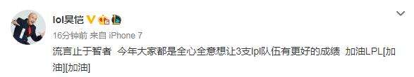 流言止于智者 今年大家都是全心全意想让3支lpl队伍有更好的成绩 加油LPL