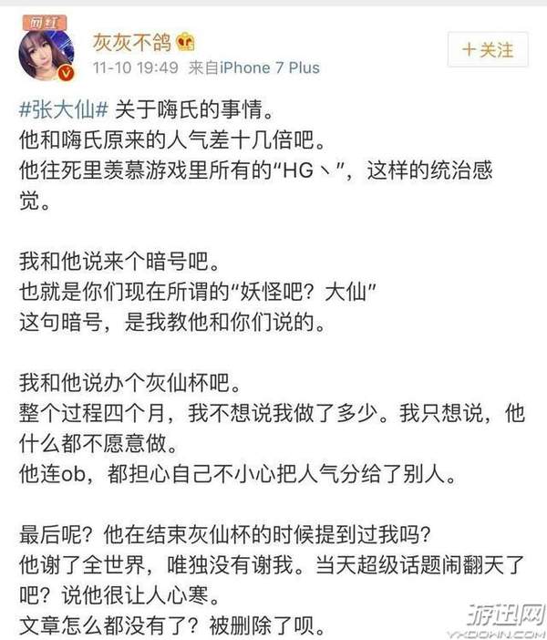 至于两人的分手原因究竟孰是孰非已经不是很重要了,灰灰也确实为张大仙提供了很多的帮助,比如灰灰被腾讯封杀出KPL解说后为张大仙转到幕后,如今两人感情已经破裂,却还将这些拿出来一点点的扒,不得不说有灰灰这样的女朋友谁都会受不了吧。