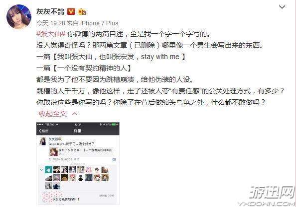 而在灰灰的微博爆料里,灰灰基本上就算张大仙的全部,人设是自己帮他设计的,粉丝互动是她想办法,公关稿她来写,“妖怪吧,大仙”这句暗号是她教的。而感情结束,她什么都没有得到,既然自己得不到,那就亲手将他毁掉。