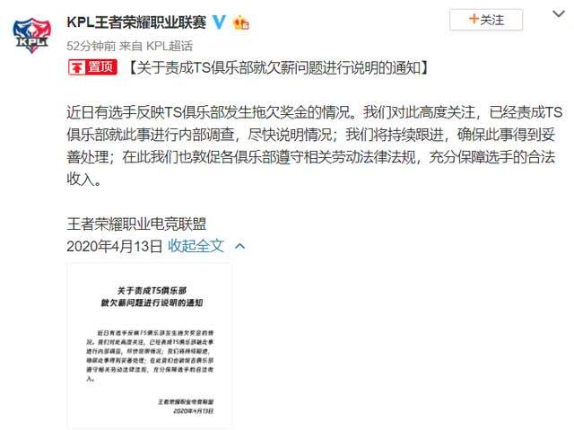 随事情的发酵与网友粉丝的关注,TS的粉丝,甚至不是TS粉丝的正义之士,开始在微博声讨TS俱乐部,各大论坛贴吧早就已经传开了,为此,kpl联盟终于发声。
