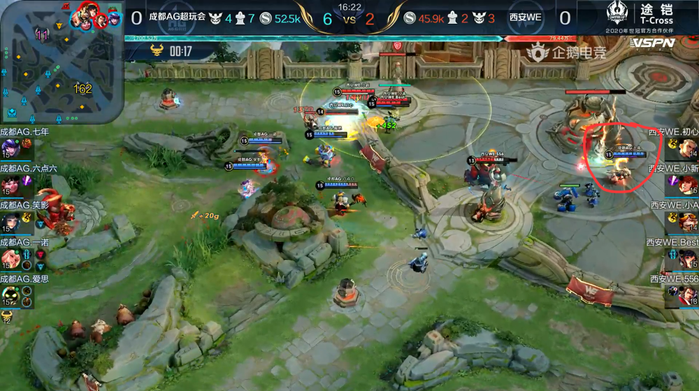个人观点:其实这局最主要的点还是因为一诺发育成型,所以让AG超玩会这套四保一体系得以发挥。而且WE前期握住节奏上优势,也没有把握机会,接团战只有自撞南墙,遗憾输掉了与AG的第一场比赛!