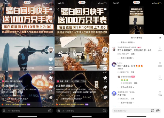 1月3日,骚白写道“家人们,我回来了”,一句话便吹响了“白家军”在快手集结的号角,该条短视频也瞬间冲上快手文娱热榜,点赞数更是接近百万。随后在1月4日,骚白一改往日游戏中的热血风格,以写信的方式向粉丝讲述这些年的心路历程,“我把青春献给了直播,你们把青春献给了我”一句话触动了诸多粉丝的回忆,他们纷纷在评论区回应道“白哥终于回来了”、“想你了,白哥”……归来仍是少年的骚白也将在快手写下一段全新的故事。
